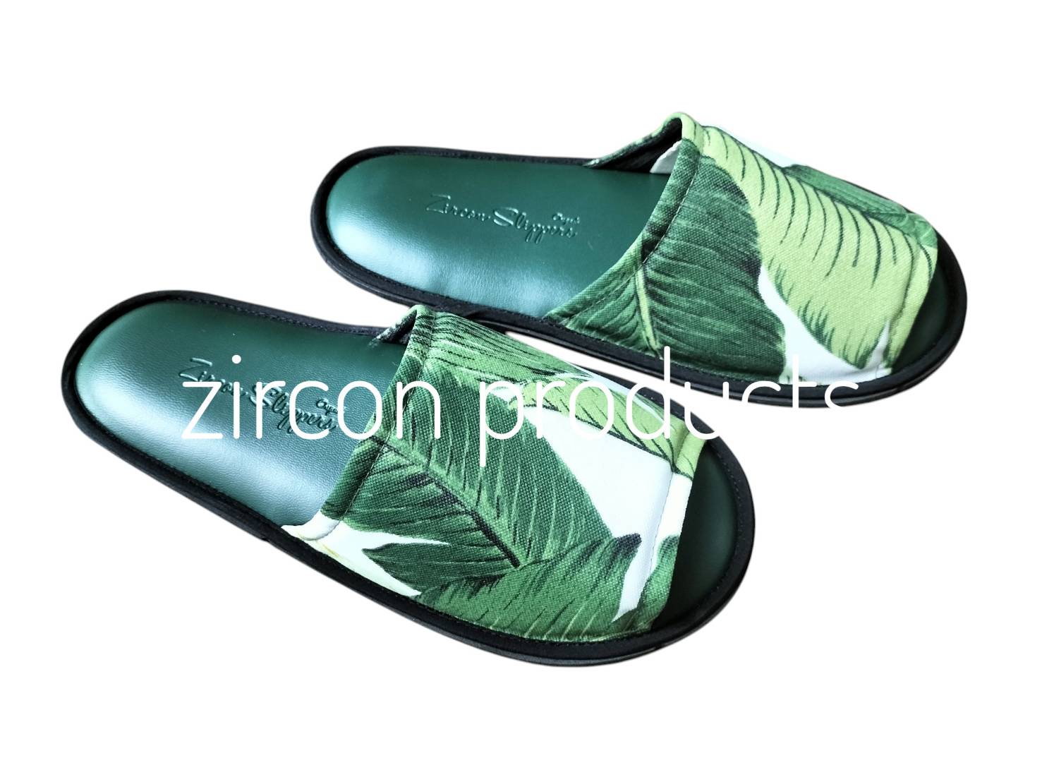 [STANDARD] สลิปเปอร์หนังเทียม แบบหัวเปิด ลายใบไม้เขียว พืืนกันลื่นลายไบ
