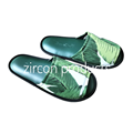 สลิปเปอร์หนังเทียม แบบหัวเปิด ลายใบไม้เขียว พืืนกันลื่นลายไบเก้น